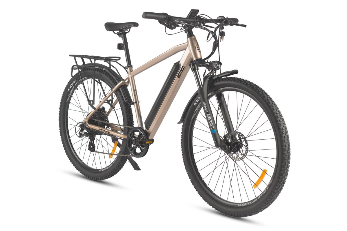 У новой топовой модели от Eltreco лёгкая алюминиевая рама с интегрированной съёмной батареей (улучшенная развесовка по сравнению со старой моделью), большие колёса 29" и покрышки Kenda с универсальным протектором, 21 скорость от Shimano, пружинно-эластомерные амортизационная вилка с блокировкой, надёжный электромотор 500 Вт и максимальная ёмкость аккумуляторной батареи, позволяющих преодолевать большие расстояния без подзарядки! В комплектацию модели входят крылья и прочный металлический задний багажник.