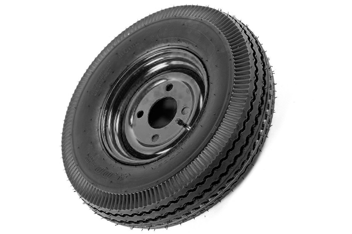 Прочный и надёжный штампованный колёсный диск в сборе с покрышкой 4,00 х 8" устанавливается на складскую технику Rutrike но может быть применён и в другом транспорте с подходящими характеристиками. Максимальная нагрузка на диск 400 килограммов!